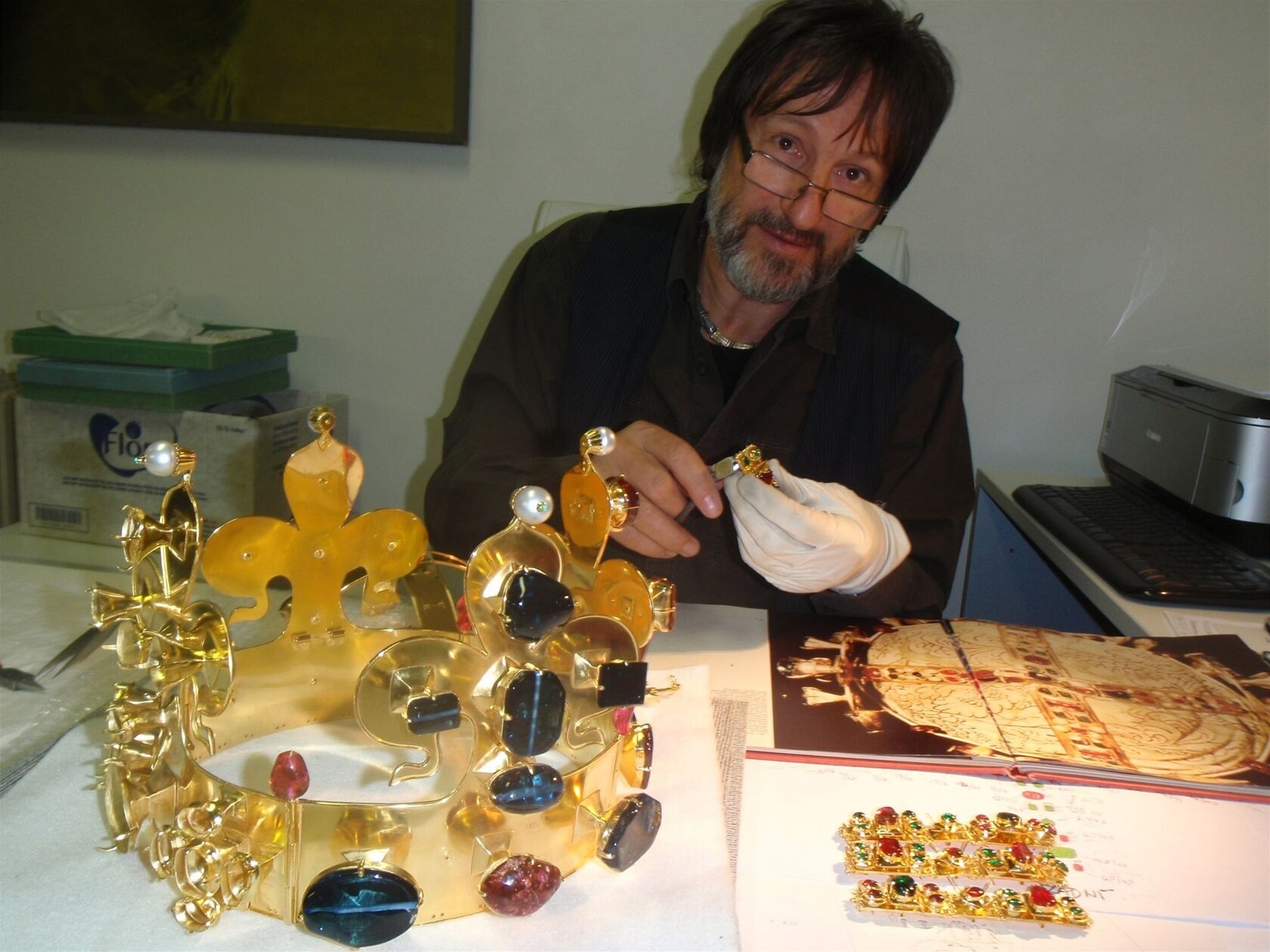 Za mimořádnou kvalitou vystavených replik stojí přední český zlatník Jiří Urban, legenda mezi současnými šperkaři. Ve své tvorbě propojuje historickou věrnost s mimořádnou řemeslnou precizností. Realizoval například reprezentační dary pro britskou královnu Alžbětu II. či papeže Jana Pavla II. a vytvořil také repliky dalších významných evropských korunovačních insignií.