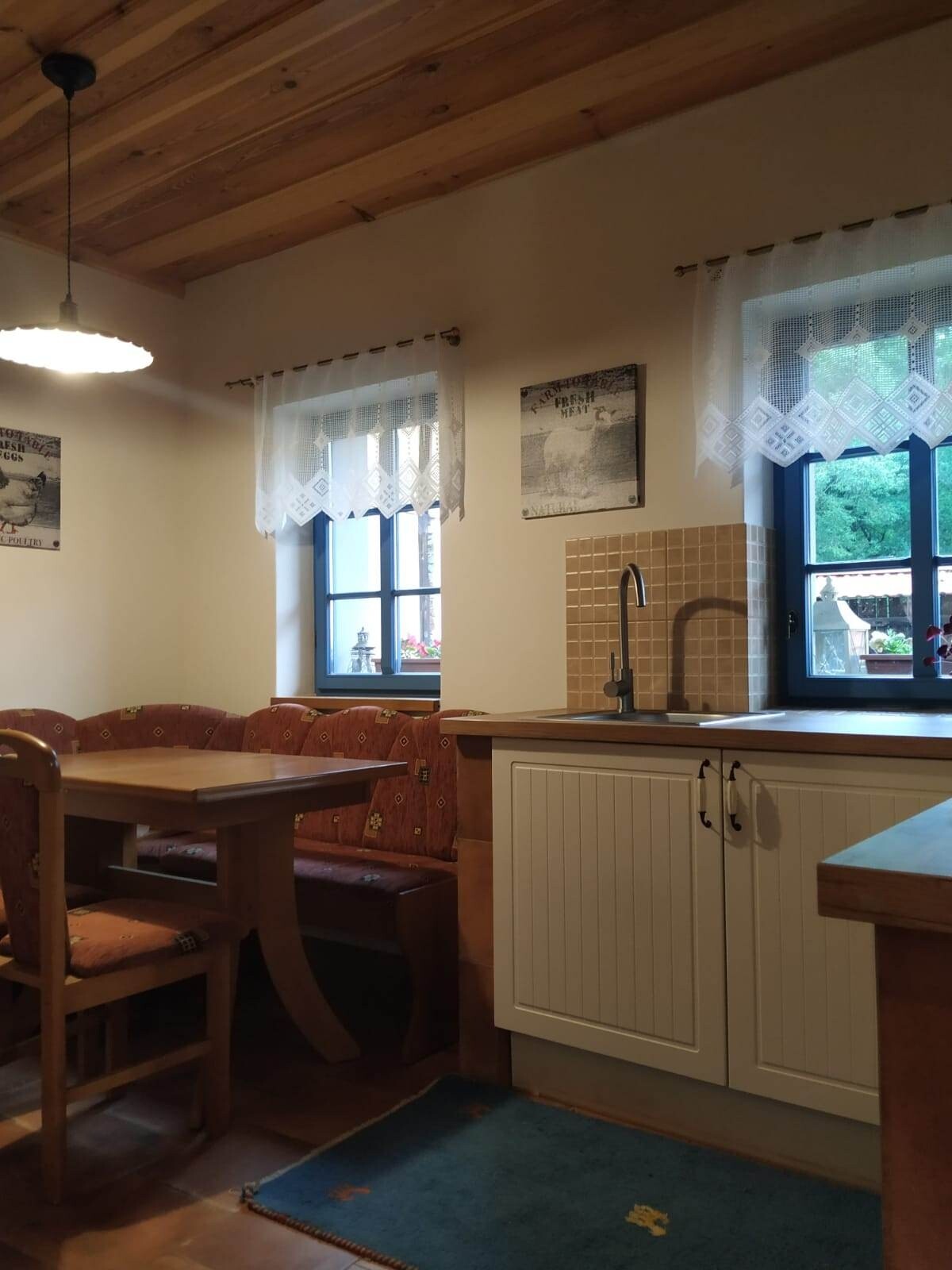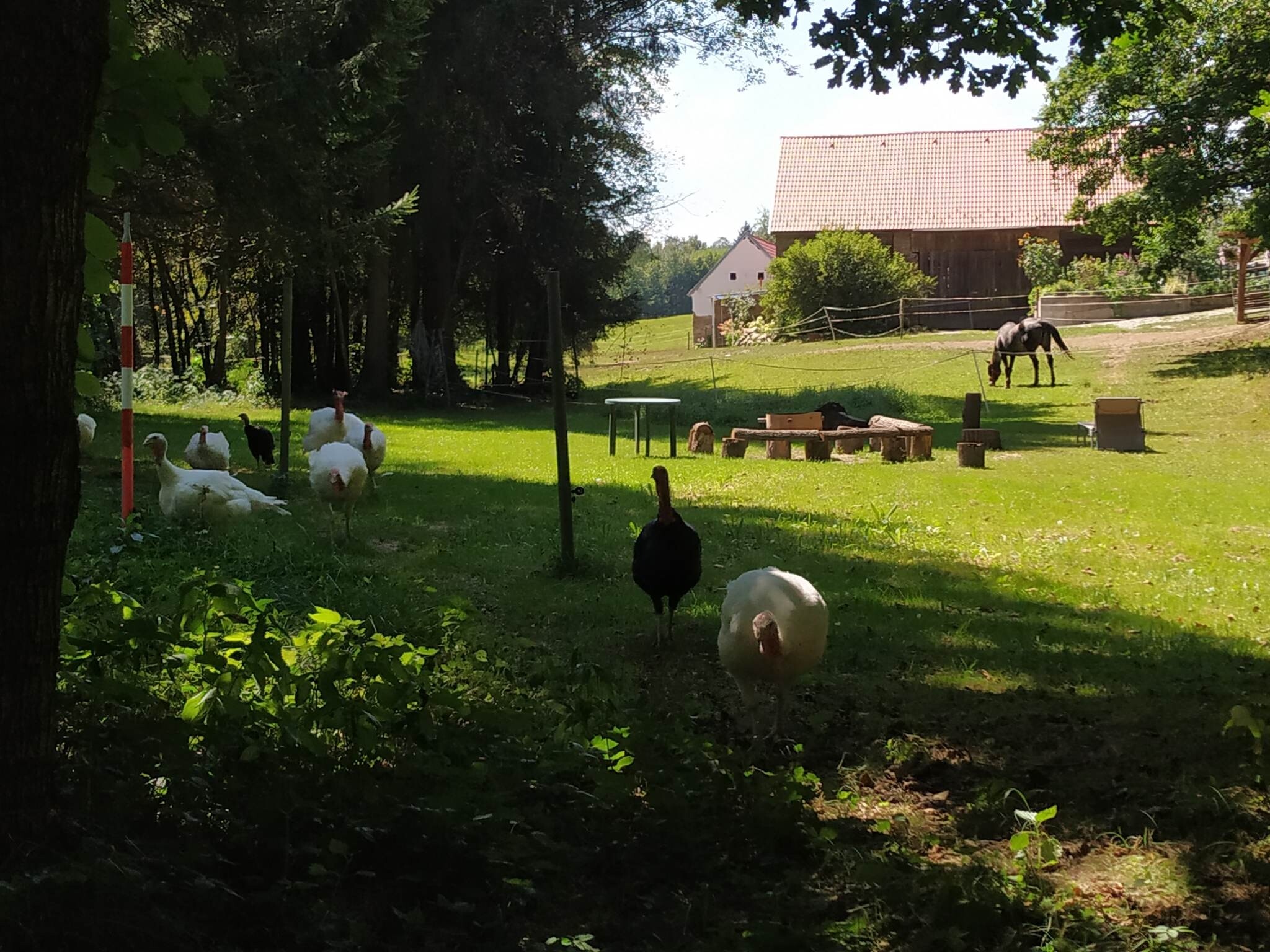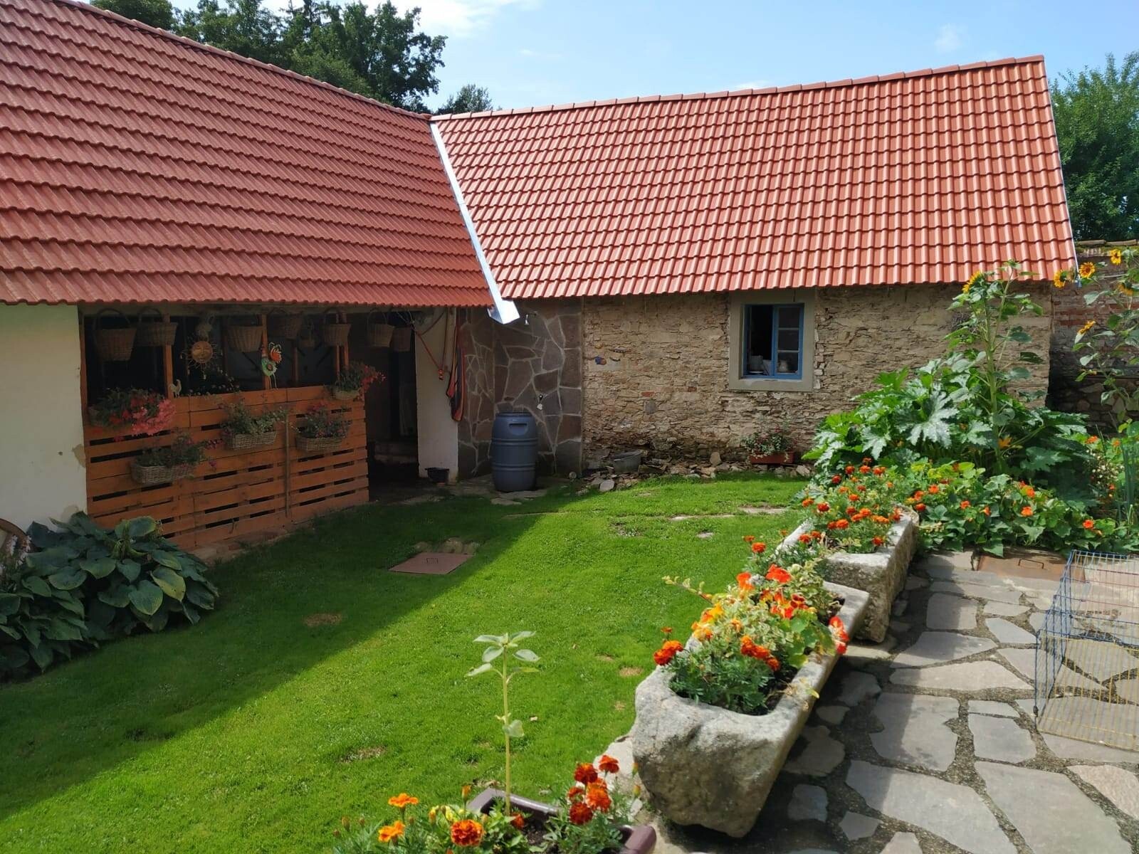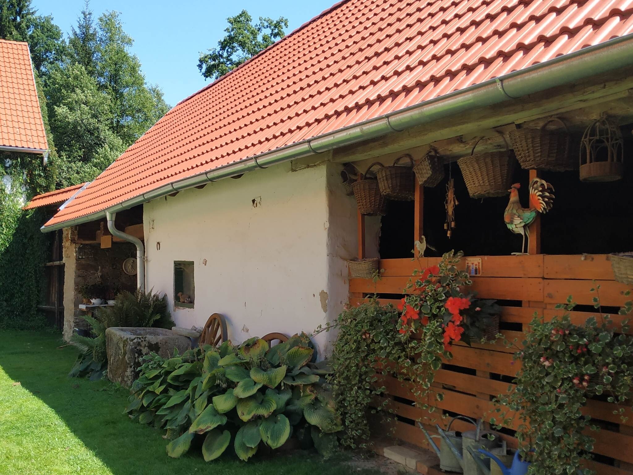 Součástí statku je i malé hospodářství se zvířaty – potkat zde můžete slepice, krůty, dva koníky, kočky i přátelského psa 🐴🐔 Právě tato atmosféra dodává místu jedinečné kouzlo a potěší zejména rodiny s dětmi i všechny milovníky venkova.